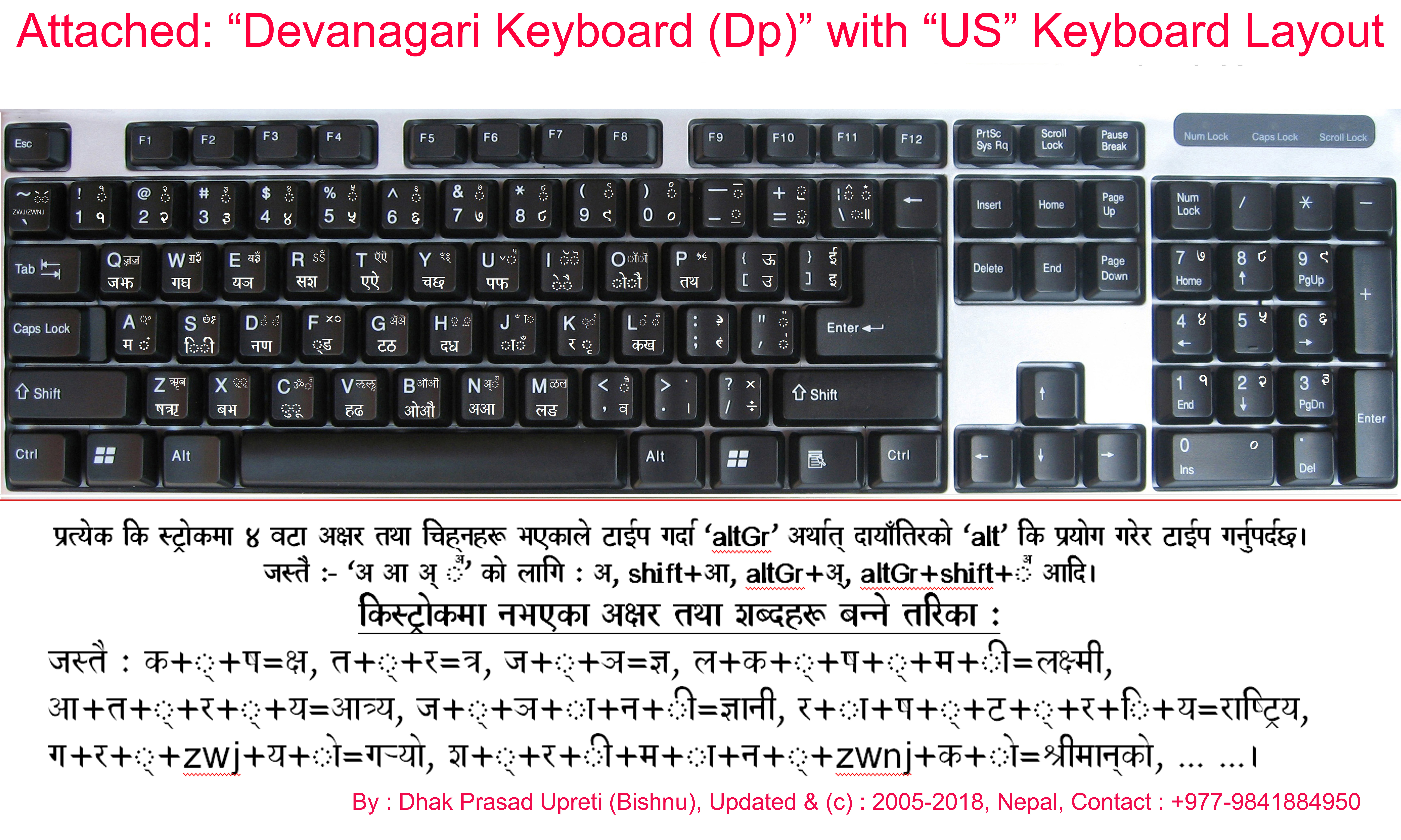 यो किबोर्ड लेआउट Devanagari Keyboard (Dp) कम्प्युटर प्रविधिमा देवनागरी लिपि, वैदिक चिह्नहरू र अन्य चिह्नहरू प्रयोग गरेर कार्य सम्पादन गर्नको लागि तयार गरिएको एउटा वैज्ञानिक किबोर्ड लेआउट हो। यो किबोर्ड लेआउटबाट देवनागरी लिपिमा चारै वेदहरू लिपिबद्ध गर्नको लागि देवनागरी लिपि र वैदिक चिह्नहरू सम्मिलित भएकाले संसारका देवनागरी लिपिमा लेखिने जुनसुकै भाषाहरू पनि लिपिबद्ध गर्न सकिन्छ। यस किबोर्डलाई वैज्ञानिक, टाइपिङ्ग भार सन्तुलित र आधुनिक बनाउनको लागि नेपाली भाषामा लेखिएको र झण्डै ५०% शब्दहरू प्रत्यक्ष सम्वादमा आधारित ३ सय ८१ पेज र साँढे बाह्र लाख अक्षरहरू भएको डकुमेन्टमा नेपाली भाषामा प्रयोग हुने प्रत्येक देवनागरी अक्षरहरूको frequency अध्ययन गरेर तयार गरिएको एक वैज्ञानिक किबोर्ड लेआउट हो। यस किबोर्ड लेआउटको सम्पूर्ण वैज्ञानिक पक्षहरू र किबोर्ड लेआउटको तालिका, किबोर्ड लेआउटको तालिका अनुसार Devanagari Keyboard (Dp) को hardware face र एउटा किबोर्ड लेआउटलाई आवश्यक पर्ने न्युनतम् अक्षरहरू राखिएको नमुना किबोर्ड लेआउट पनि स्पष्ट रुपमा प्रस्तुत गरिएको छ। यो किबोर्ड लेआउट अनुसार Microsoft Windows मा आवश्यक Keyboard Layout Mapping Table बनाई यही Table अनुसार install गरेर प्रयोग गर्नको लागि computer software Devanagari Keyboard (Dp) keyboard driver पनि यस लेआउटसँगै बनाएको छु। यसैगरि लिनक्स अपरेटिङ सिस्टमको Ubuntu 18.04 LTS भर्सनमा पनि परिक्षण गरेर लिनक्स जस्ता ओपन सोर्सभएका कम्प्युटरमा पनि सजिलैसँग यो किबोर्ड लेआउट प्रयोग गर्न सकिने कुरा प्रमाणित गर्दै यस संस्करणदेखि लिनक्सको लागि xkb/rules/evdev.xml को कोडिङ र xkb/symbols/dpk Keyboard Layout Mapping Table पनि स्पष्टसँग तयार गरिएको छ जसले गर्दा यो किबोर्ड लेआउटलाई सजिलैसँग आ-आफ्नो अपरेटिङ सिस्टममा सजिलैसँग एट्याच गर्न सकिनेछ। यसैगरी Apple कम्पनिको MAC OS मा पनि install गर्नको लागि “.dmg” इन्स्टलर पनि बनाइएको छ। यसकारण अहिले सम्मका धेरै चल्तिमा रहेका कम्प्युटर सिस्टमहरू Microsoft Windows, Linux OS and MAC OS मा सजिलै इन्स्टल गर्न सकिन्छ। यस किबोर्ड लेआउटबाट कम्प्युटरमा देवनागरी लिपिमा काम गर्ने संपूर्ण भाषा-भाषीहरूलाई सजिलो हुनेछ।